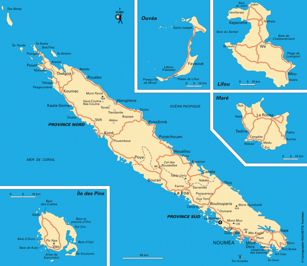 Les principaux axes routiers en Nouvelle-Calédonie.
