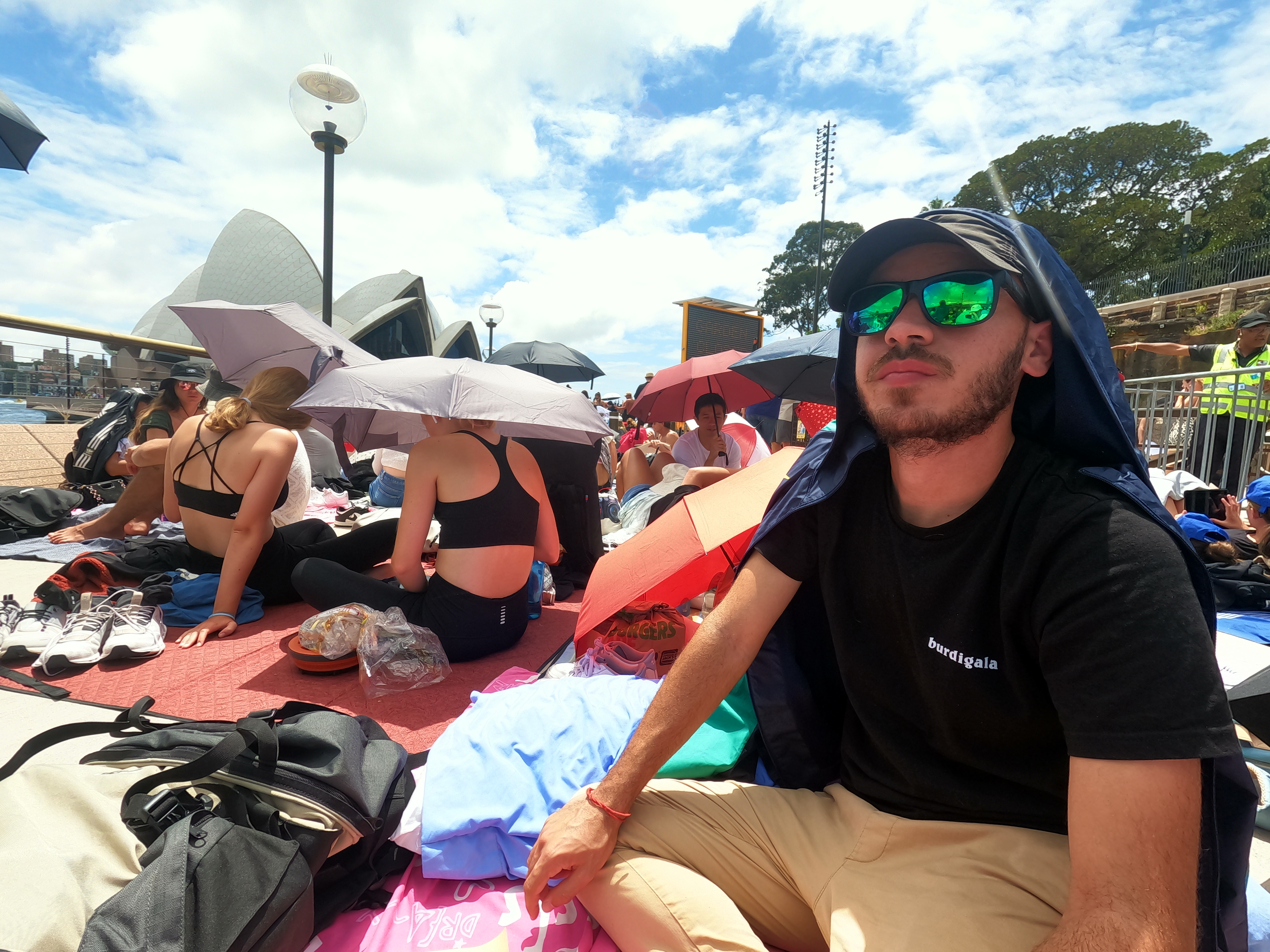 Nous n’avons pas baissé les bras et nous sommes rabattus sur le spot n°2 incontournable également qui est … l’opéra de Sydney 🎤 🎵 ! Il ne permet pas certes d’avoir du recul sur l’ensemble des feux d’artifices mais permet d’être au cœur même de l’action, ce qui n’est pas négligeable ! L’entrée est gratuite et sans ticket ! L’endroit est malgré tout limité à un nombre de places disponibles et pour y accéder il faut alors se battre… Comment me diriez-vous ? En se levant très tôt, tout comme tout bon concert qui se respecte. ⏰ 🥱