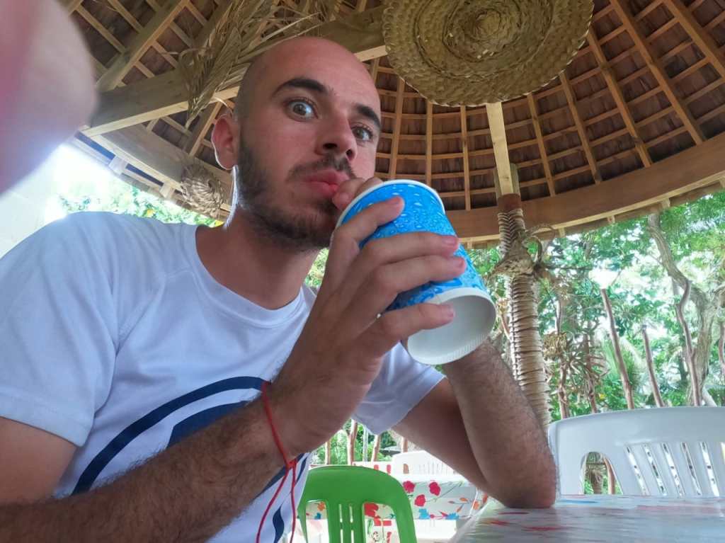 Après cette randonnée, nous nous sommes rendus dans un petit bar tout mignon caché derrière la station essence de Hienghène au bord de la plage pour prendre un grand jus de fruits pressés ! (Juju s’est régalé, preuve en image 😂 )
