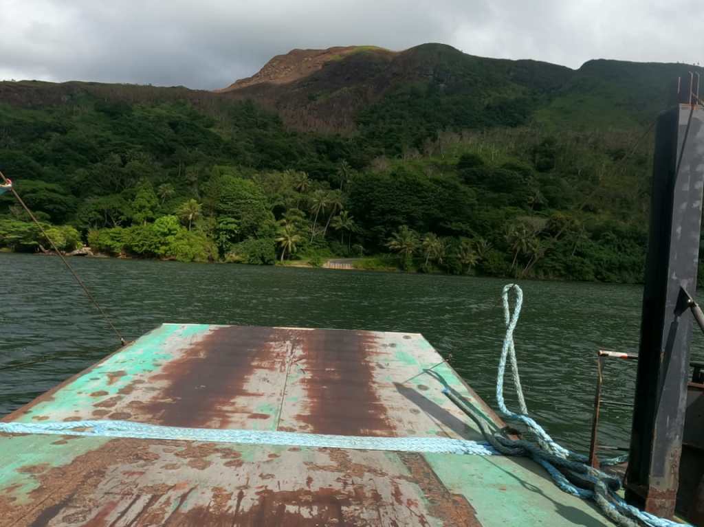 Le dimanche matin, nous avons voulu nous rendre à la cascade de Tao qui nécessite pour cela de prendre le célèbre bac de la Ouaième. Il s’agit du dernier bac de Nouvelle-Calédonie et il fonctionne nuit et jour 7/7 ! (sauf par temps de fortes pluies)