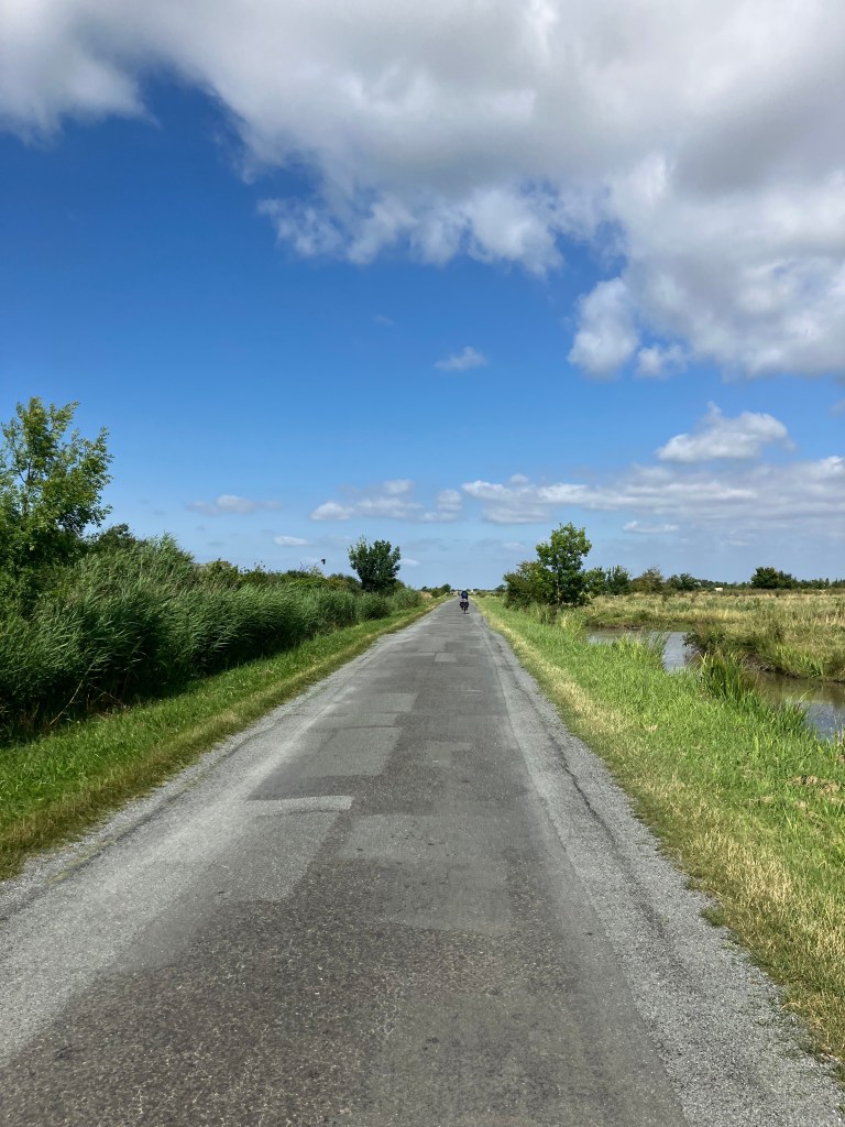 Nous repartons, non sans mal sur nos vélos, pour finir cette journée. Nous passons au milieu des marais de Marennes et cette fois-ci nous avons presque le vent dans le dos, quel plaisir ! Cette partie est très agréable car on alterne les routes, les pistes cyclables et les chemins. L’itinéraire que nous suivons est paisible et varié.